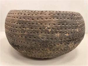 Cesto de juncos trenzados descubierto en la necrópolis de La Mondia (la Cuesta. Barlovento). (Foto: Pedro Riverol-MAB)