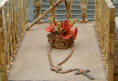 Carreta, presentada por el barrio de Tajuya. En la foto del artículo anterior no se ve su contenido; aquí sí. Materiales: badana, macarrones y corcho de pino.