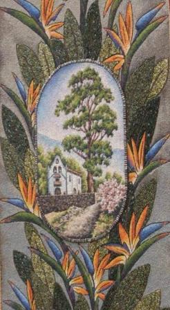Como dije en el artículo antes mencionado, los materiales usados por Santiago son cáscara de huevo molida y teñida, y semillas naturales,