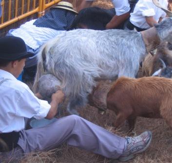 ¡y probé “leche con gofio”, pero con leche recién ordeñada, aún espumeante y tibia por el calor de la ubre de la cabra. También Chepina, mi mujer, dio cuenta de un vaso de ese manjar.