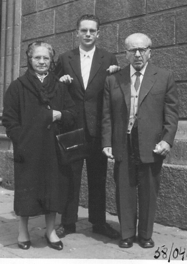 Tía Nila, tío Pedro y Carlos Padrón. Foto tomada frente a la iglesia de San Agustín, en La Laguna (Tenerife).