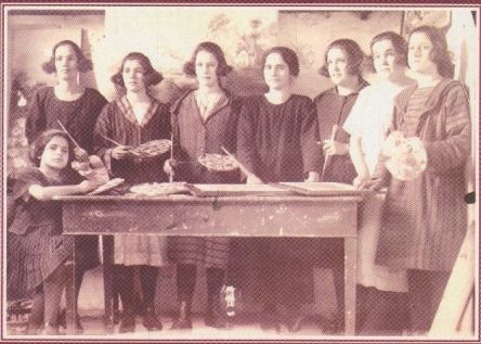 Doña Nila (la cuarta, de izquierda a derecha, de las que aparecen detrás de la mesa) con algunas de sus alumnas,… que no sé quiénes son.