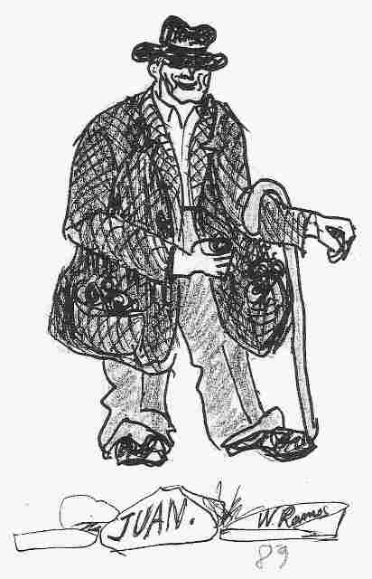 Usaba sombrero y bastón, como aparece en este dibujo de Wifredo Ramos,