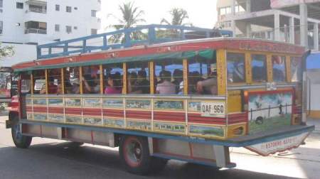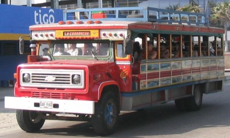 Para iniciar el tour —para mí, zafari— a Barú, a las 08:00 de la mañana del domingo 16/03 nos recogió en el hotel un vehículo llamado “chiva” que es un autobús muy ancho, con asientos en filas transversales abiertas por sólo el costado derecho, y decorado con abalorios de todo tipo (espejitos, tablitas multicolores, cueros repujados, figuras de santos, y otros detalles igualmente cursis e inútiles),