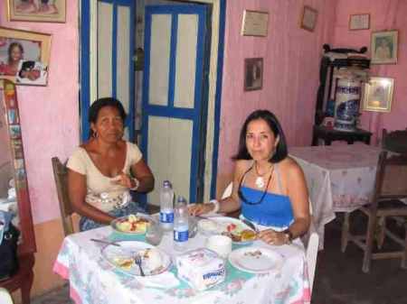 El almuerzo, a base de pescado fresco, fue en casa de Mariela y con bastantes vecinos congregados en el terraplén frente a esa casa, y en el exterior de las casas vecinas, atraídos, supongo, por la novedad de nuestra visita.