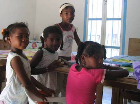 Y las niñas se acercan para ir aprendiendo de las mayores.