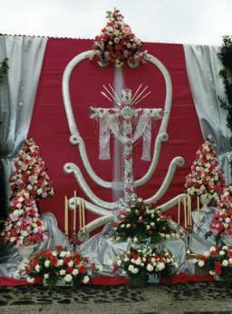 La belleza ornamental se consigue mediante combinaciones de vegetales, telas, alhajas y otros objetos de gran valor. Era frecuente la escenificación en algunas de las cruces parodiando temáticas de cualquier índole.