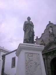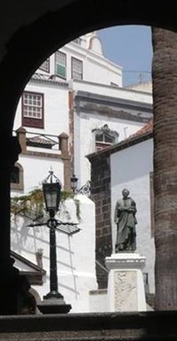 Es magnífica su estatua en el centro neurálgico de La Palma. Un exquisito monumento, de los más fotografiados de la Isla por estar en la renacentista Plaza de España, creado para honrar perpetuamente a un hombre que fue enterrado en el cementerio de su amada ciudad. Una ciudad que, curiosamente, tan sólo colocó sobre su sepulcro una burda lápida de cemento y piedra con una pobre cruz de madera de la que cuelga una tosca leyenda que reza: “D.E.P. El Presbítero Beneficiado de la Parroquia de El Salvador. Don Manuel Díaz Hernández”. La pobre tumba se halla entre tres fastuosos mausoleos blancos de otros hijos de La Palma. ¡Qué incongruencia! Sin embargo, siempre hubo alguien que se acordaba de él, puesto que flores frescas nunca le han faltado.