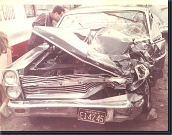Para entonces ya tenía yo mi tercer carro: un Ford Fairlane 500 Custom Año 1966. El segundo fue también uno de la misma marca, modelo y año pero que quedó destrozado, con sólo 458 Km. de recorrido, cuando el sábado 16/04/1966 a las 02:00 pm estando yo parado esperando el cambio de luz en un semáforo de la Avenida Victoria, en Caracas, de una calle transversal apareció a mil por hora un vehículo, del que sólo escuché el chirrido de cauchos, que se estrelló contra la esquina delantera izquierda de mi carro, dejándolo inservible, y a mí con varias contusiones, el codo izquierdo seriamente lesionado, y una costilla rota.