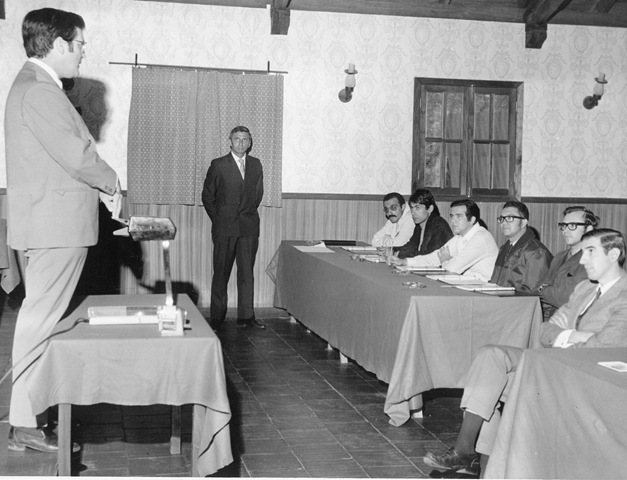 FOTO 4.- 1970-Jul-03.- 1, Carlos M. Padrón (sentado); 2, Santos Erminy (q.e.p.d.), durante una clase del Entry Level Training (ELT) en Capriles.