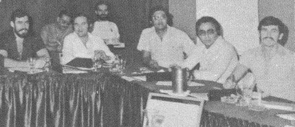 1, Federico Trinquete; 2, Jorge Wilhem; 3, Gianni Marzorati; 4, Clodomiro Torres; 5, Mónica Plaut; 6, José Avendaño, de I.S.; 7, Germán Soria (q.e.p.d.).