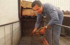 Carlos M. Padrón poniendo algunos polluelos de Khaki Campbell en la estación de crecimiento.