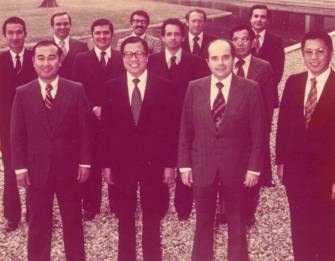 FILA CENTRAL: 1, Oscar Convers (IBM-Colombia); 2, Carlos Frankel (IBM-Brasil); 3, Haru Kuru (IBM-Japón).