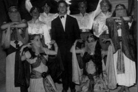 La foto que sigue fue tomada el 21/03/1957 y corresponde a un número, ideado y montado por él, y al que tituló «Danza moruna», que formó parte de una «velada» de las que entonces se hacían en el pueblo.