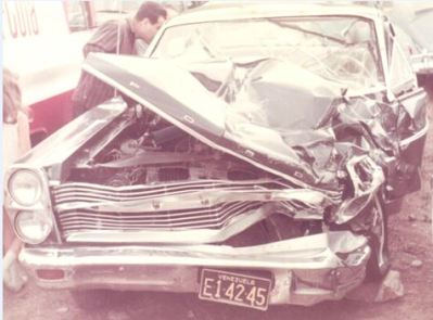 Recibida ya el alta médica, quise saber dónde y cómo estaba mi carro, y tomarle fotos que podrían serme de utilidad en el reclamo al seguro, y el domingo 24/04/1966, mi hermano Tomás (q.e.p.d.) nos llevó a Cecilia y a mí al lugar de Tránsito, un lote de terreno en o cerca de Vista Alegre, al oeste de la ciudad, donde quedaban confiscados los vehículos implicados en un accidente en el que hubiera habido heridos o muertos.