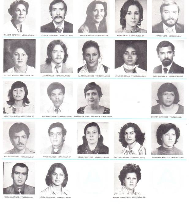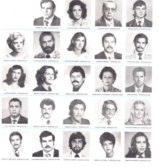 Las chicas en esta foto eran de la Junta Directiva del Club IBM. El tercero sí que es Rando. Entre Hugolina y yo está Magally (no recuerdo su apellido). Y al lado de Cristóbal von Wachter está el S.E. Lucero, quien administraba los ATMs antes de que yo lo hiciera en 1979. No recuerdo el nombre del que está delante de Lucero, pero era de Marketing DP. ¡Ah!, y ahora recuerdo que el “altote” que está al lado de Ildiko se apellidaba Cupelo, y también era de Marketing DP.