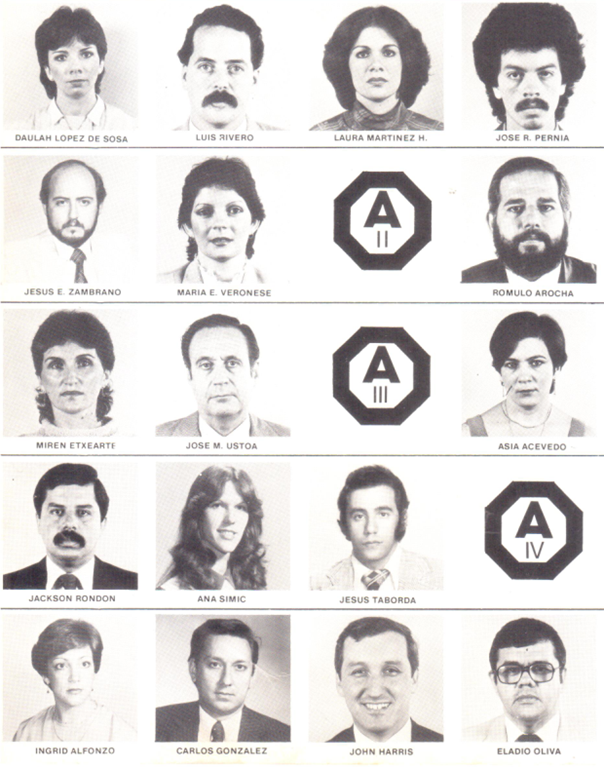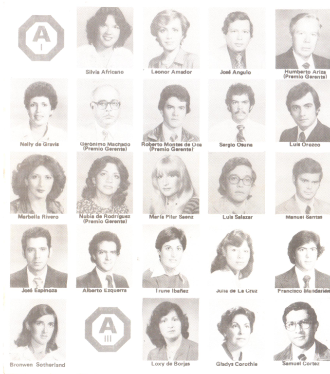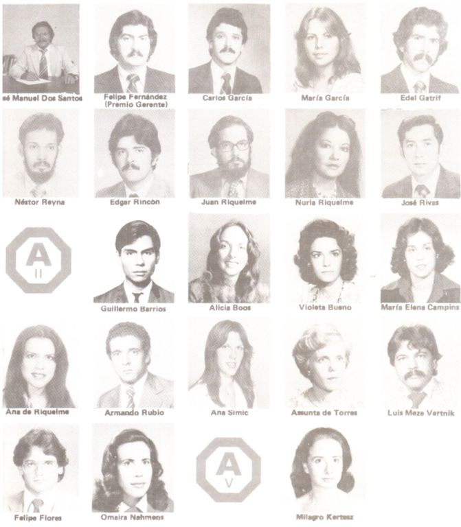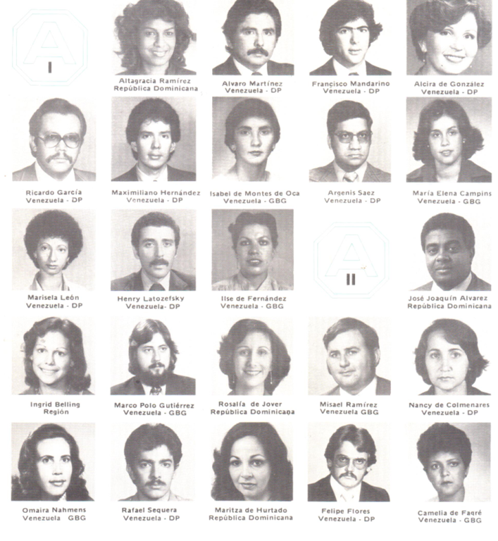 1.- En la primera fila: el 2do., de camisa roja, Arturo Lozada, luego Roger Dupouy, Simón Rodríguez, Reinaldo Semeria, Mardely Vega, y Gregorio Ordaz.