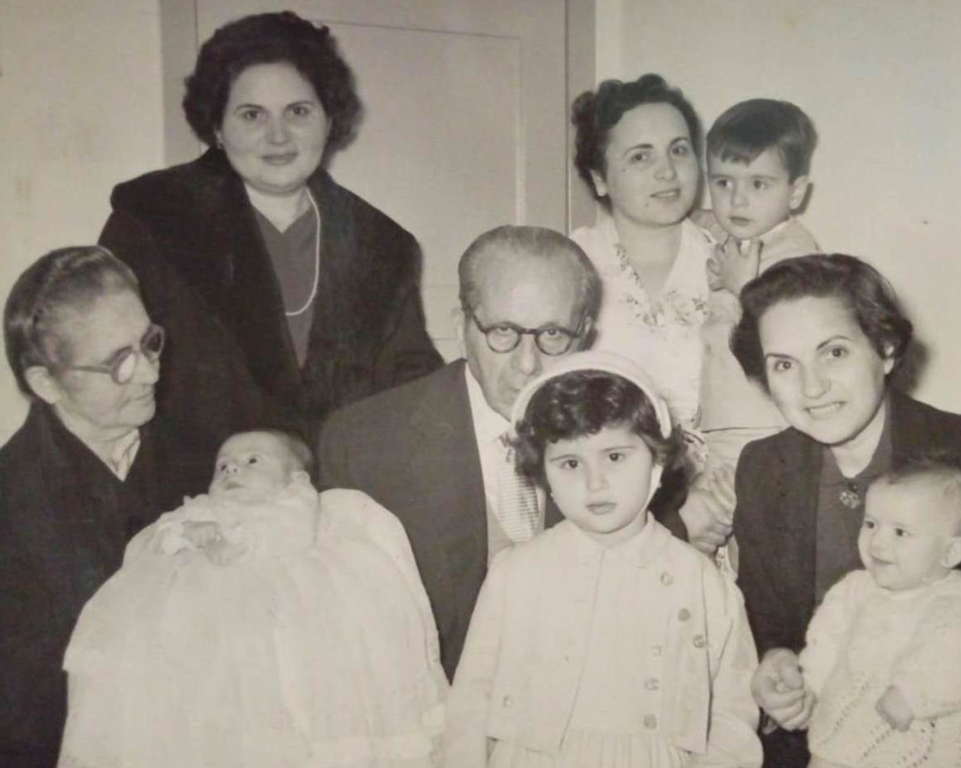 Detrás: Concha Castillo, Rosarito Castillo y, en brazos de ésta, su hijo, Antonio Dorta Martín, de quien he obtenido estas fotos | Al centro: Tía Nila, tío Pedro (ya enfermo de párkinson), y Carmen Castillo | Delante (niños): En brazos de tía Nila, Luis Dorta Martín (esta foto fue tomada en enero o febrero de 1958, el día de su bautizo); Conchita Acuña Martín, hija de Concha Castillo; Mari Carmen González Martín, hija de Carmen Castillo.