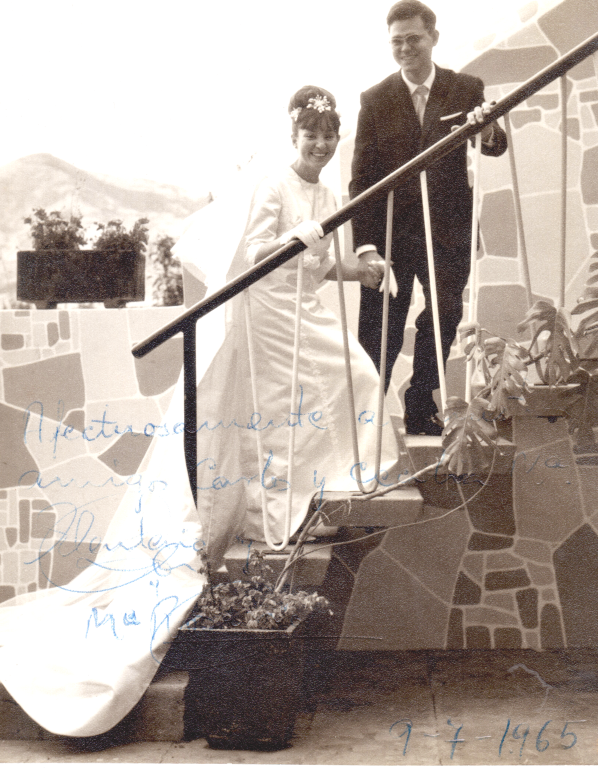 Con su ya esposa, María del Rosario (Rosarito o Charo), el día de su boda