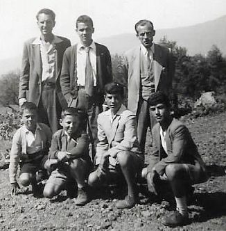 • Delante.  1. Manuel García Fernández (Manolo. Hijo de don Santiago) †;  2. Santiago García Fernández (Chaguín. Hijo de don Santiago);  3. XX;  4. XX