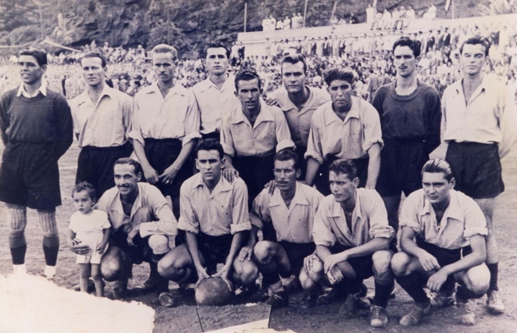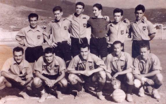 C. D. Atlético Paso. Fotografía tomada el 19 de octubre de 1952 en el Estadio Aceró (Los Llanos de Aridane) antes del encuentro entre Atlético Paso y Atlético Morro que terminó Atlético Paso, 2 – Atlético Morro, 1.