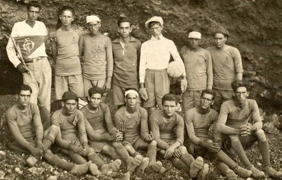 Juventud Católica. Entre otros: Juan Afonso; Manuel Padrón; Eliseo San Gil; Ismael de Paz; Norberto XX; Manuel González (Melo); Miguel XX (Catana); Marín Capote; Ernesto de Paz; Ezequiel González. || Recostado en el suelo y con gorra: Antonio Pérez (El Gato)