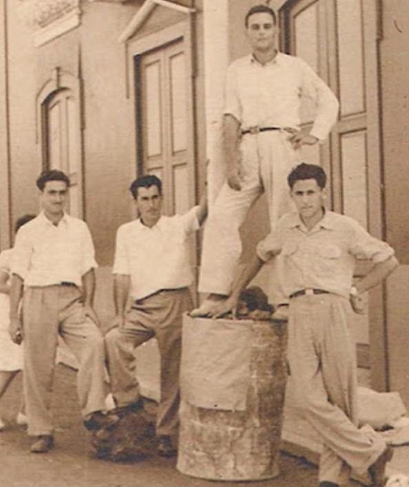 En pie y de izquierda a derecha: 1. Cristóbal XX (Cristobita); 2. Estanislao Domitilo Vicente Hernández Pérez † (Neno el Josco); 3. Ángel Díaz Pino (Lelo)