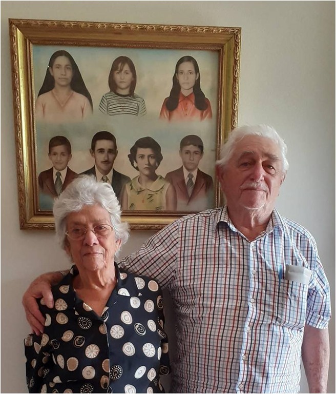 Antonio Acosta Hernández junto a su esposa, Ana Rita García y, detrás, en un cuadro con sus hijos