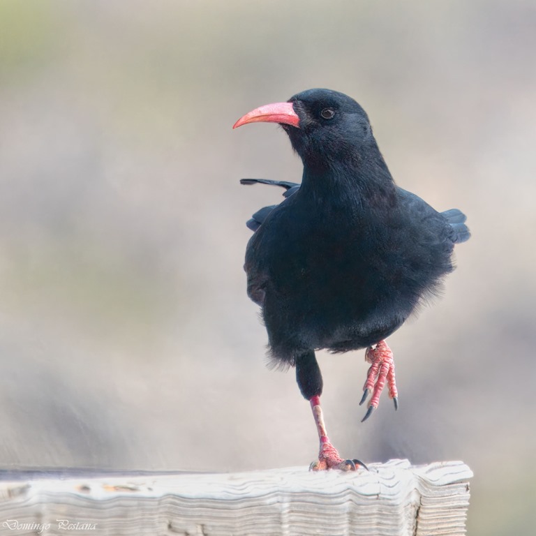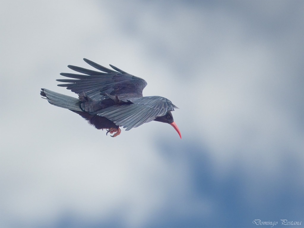 Graja, chova piquirroja en vuelo. Foto: DOMINGO PESTANA