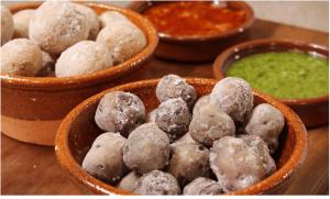Papas arrugadas y mojo verde o rojo. Plato típicamente canario