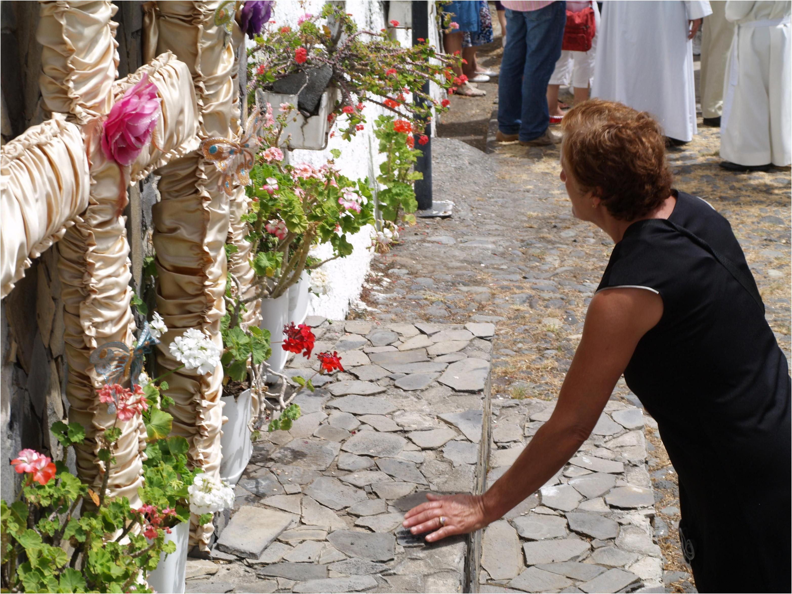 Pocos años después este hermoso relato, tenido por milagroso, hizo brotar sincera fe y en el lugar donde los devotos quisieron erigir originalmente la ermita se convirtió en un lugar sagrado, pisado por la Virgen, y determinaron perpetuar en la memoria del pueblo erigiendo un humilde Calvario con tres cruces de tea sobre escalones de piedra.