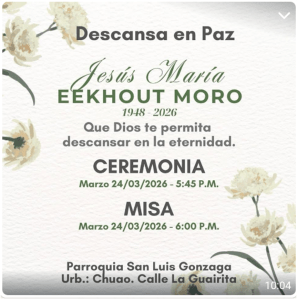 Destino de sus restos: Serán cremados en el Cementerio del Este (Caracas)