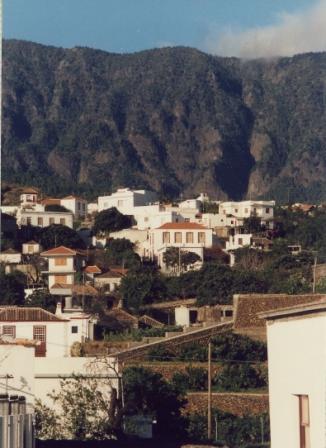 Los montes del sur, bañados por La Brisa. Delante, la Montaña de Enrique; en segundo plano, el Virigoyo, el pico puntiagudo (1.811m) que despunta al fondo. Detrás de él surgió la columna de humo del Volcán Cumbre Vieja o Nambroque.