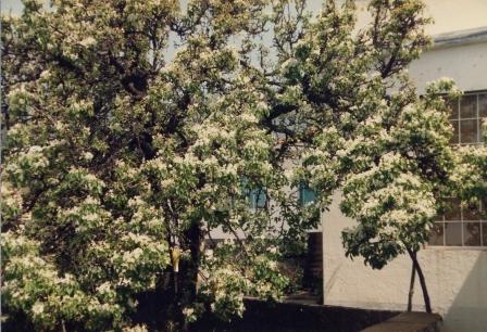 El peral en flor, el mismo que se ve a la derecha, detrás de otro árbol, en la foto anterior.