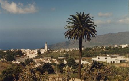 ARRIBA: Desde el jardín de mi casa. En primer plano “La palma de Arturo”, una especie de icono, visible casi desde cualquier lado, que sirve de referencia para llegar a mi casa. Si esta palma no es centenaria está muy cerca de serlo, pues desde que tengo uso de razón la recuerdo así, del mismo tamaño. Su tronco se incendió varias veces, mil vientos huracanados la vapulearon e hicieron doblar hasta casi partirse, pero hasta ahora ha salido airosa y sigue orgullosamente erguida y frondosa. ABAJO: Vista hacia el Este.