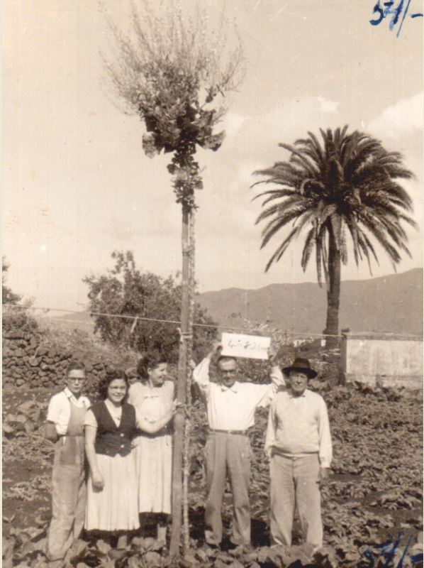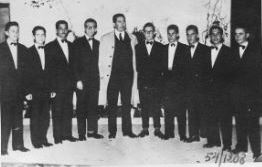 Foto tomada el 08/12/1954.- De Izq. a derecha: Juan Antonio Pino, Antonio Capote, ¿?, Miguel Díaz, Pedro Lorenzo, Carlos Padrón, ¿?, ¿?, Javier Simón, y Teudis ¿?.
