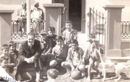 Creo que, salvo Maximiliano y Antoñico —los dos caballeros sentados al fondo—, las demás personas que aparecemos en esta foto vivimos aún, aunque yo sólo conozca a dos o tres de los niños que en ella me acompañan.