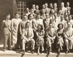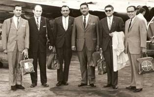 Julio/1957. Mitad derecha de la foto de la cena de graduación del curso de máquinas convencionales dictado en Lima (Perú).