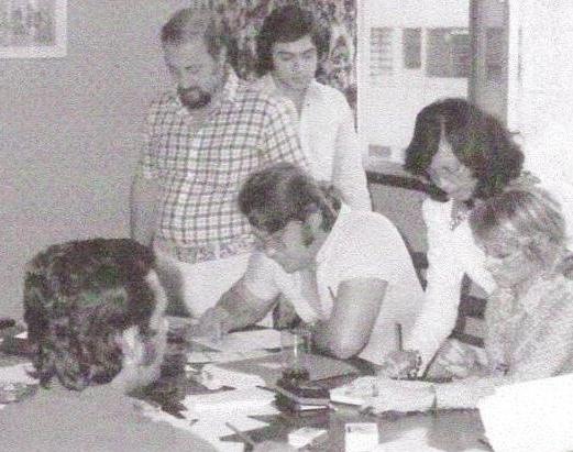 De atrás hacia adelante, y de izquierda a derecha: Horacio Malcervelli, técnico de IBM-Venezuela; Y1, técnico de IBM-Colombia; Y2, técnico de IBM-Argentina; Eduardo Mireles, entonces gerente de ese centro; Y3 (sentado), técnico de IBM-Argentina; Elba Soto [1], «Miss IBM-Urapal» porque, según me cuentan, traía de cabezas a todos los hombres que allí trabajaban; y en cuclillas, Armando Girola, técnico de IBM-Venezuela.